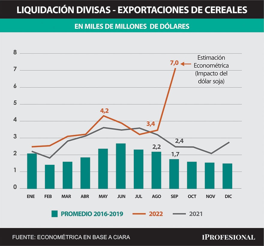 El sector aprovechó las retenciones implícitas más bajas en dos décadas y liquidó un récord histórico que Econométrica estima que llegará a u$s7.000 millones en septiembre. Esto es el doble de lo que liquidó el sector el mes previo y casi tres veces lo que liquidó en igual mes del año pasado.