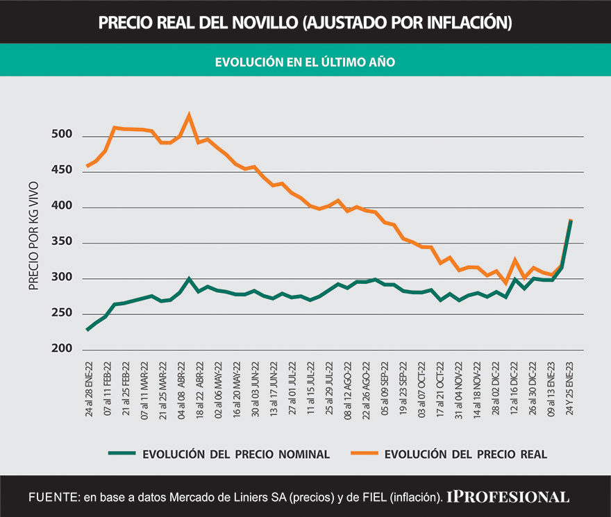 Usualmente, los precios de la hacienda y la carne tienen un aumento visible un poco antes de las fiestas de fin de año; en 2022 se agregaba el atraso de los valores nominales en medio de una inflación de casi 95% anual, la más alta en más de tres décadas.