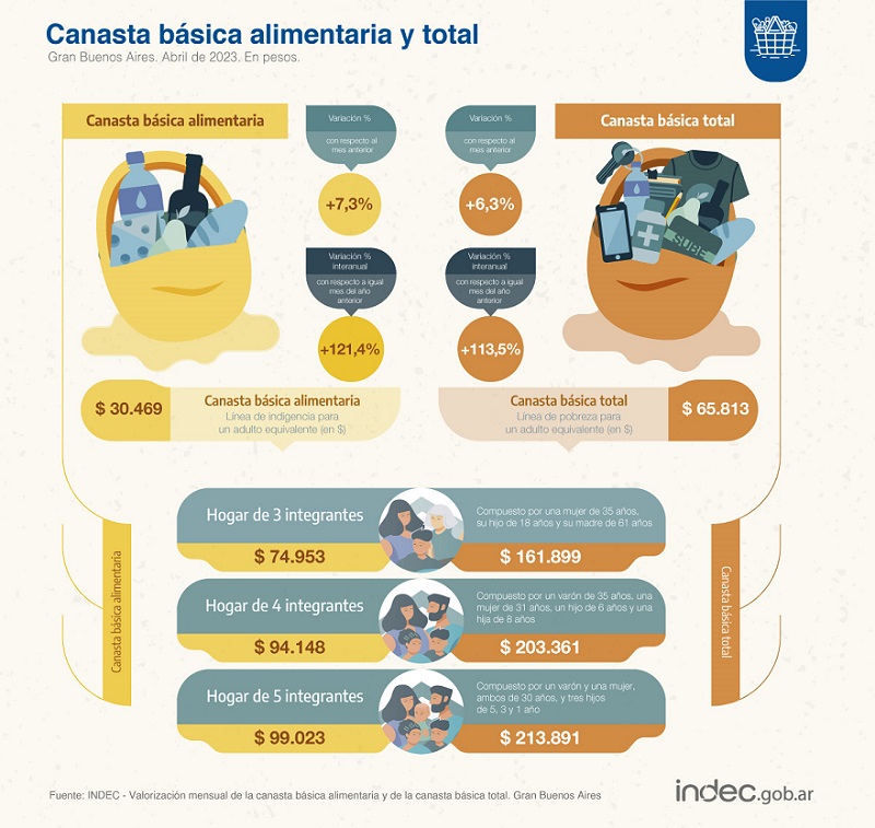 En tanto, la Dirección de Estadística y Censos de la Ciudad de Buenos Aires había calculado un número preocupante para las canastas porteñas: la que sirve de referencia para estimar la pobreza aumentó en abril el 9%, mientras que la canasta de indigencia subió el 11,04 %.