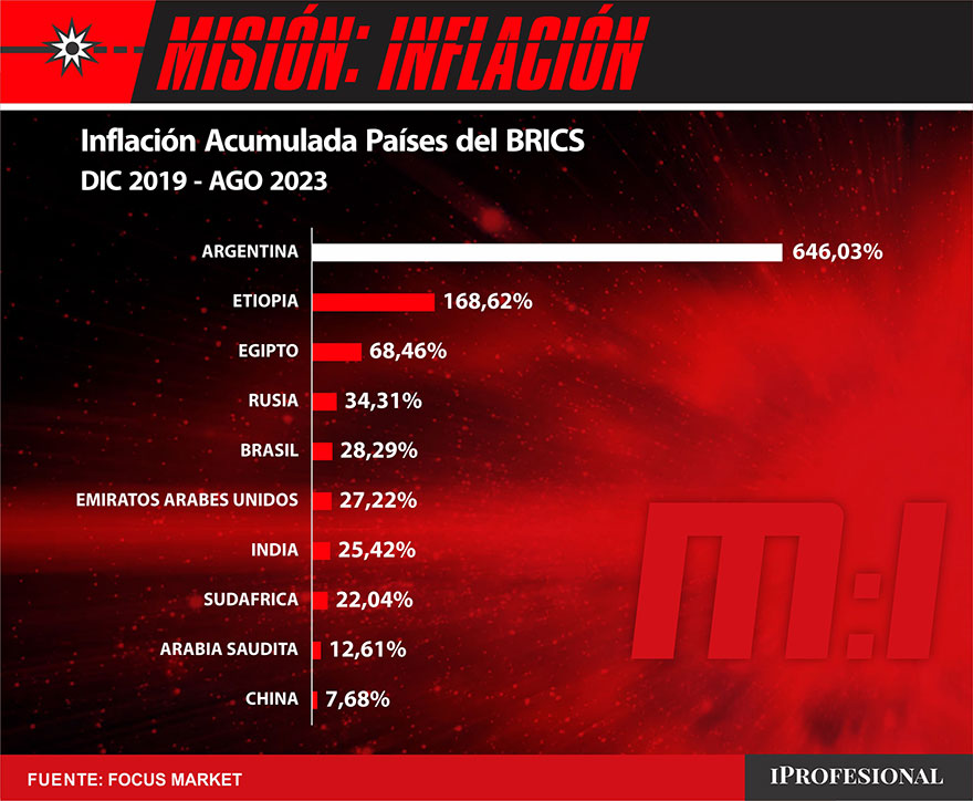 Argentina lidera el ranking de inflación entre los países del BRICS