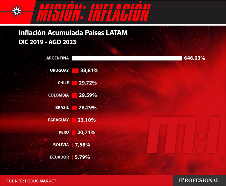 Si focalizamos el análisis a nivel Sudamérica para el mismo período, acumulamos mayores niveles inflacionarios que hace que ningún acuerdo, bloque o unión comercial sea factible sin encontrar una solución a la crisis inflacionaria.