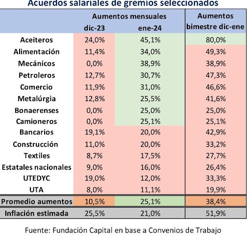Todavía no hay datos oficiales sobre la actividad económica en este comienzo de 2024, pero las proyecciones de las consultoras ya hablan de un grave hundimiento del PIB. La clave hay que mirarla en el histórico proceso de deterioro del poder de compra de los ingresos de los trabajadores. Algunos registros de la caída del consumo ya dan cuenta de esa caída.