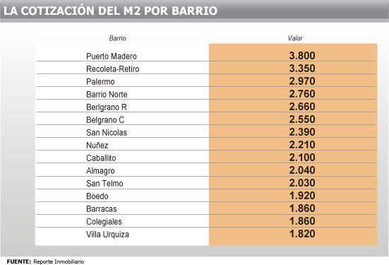 Si bien el precio del metro cuadrado en la Capital Federal se incrementó desde la salida de la convertibilidad, alrededor del 180% "en promedio" (es decir, tomando todos los barrios), según los valores que consigna Reporte Inmobiliario, surgen notables variaciones entre las distintas zonas.