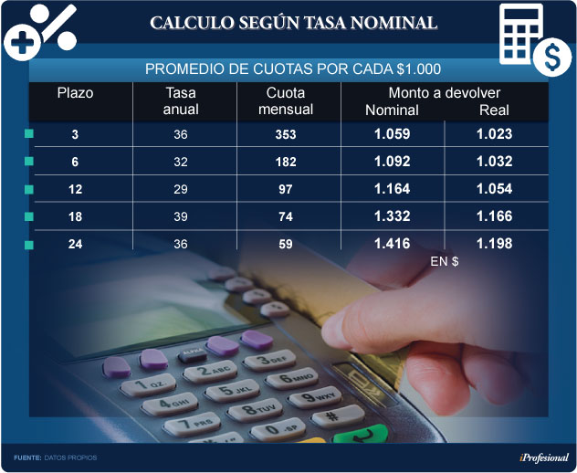 Para el plazo financiado más corto, que son tres meses, surge que un consumidor terminará pagando un valor de $1.023, descontada la evolución del índice de precios. O, dicho de otro modo, un 2,3% por encima de la inflación.