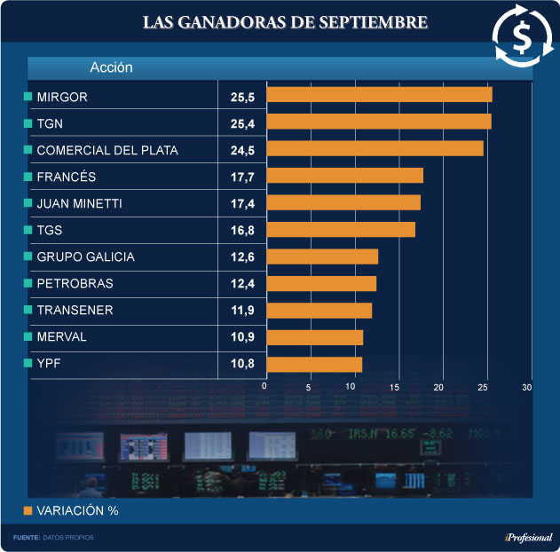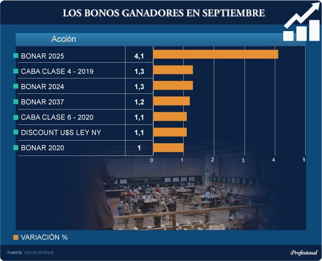 En tanto, en títulos públicos el gran ganador de septiembre fue el Bonar 2025, con un alza de 4,1 por ciento.