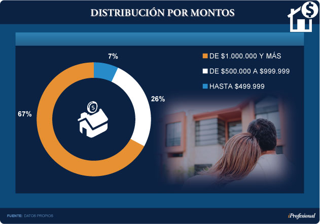 Quienes solicitan entre $500.000 y $1millón representan el 26% del total, y sólo el 7% va en busca de un hipotecario por debajo de ese rango (ver cuadro).