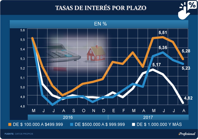 - Para los de más de un millón de pesos, descendió del 5,2% al 4,8% (40 puntos básicos)