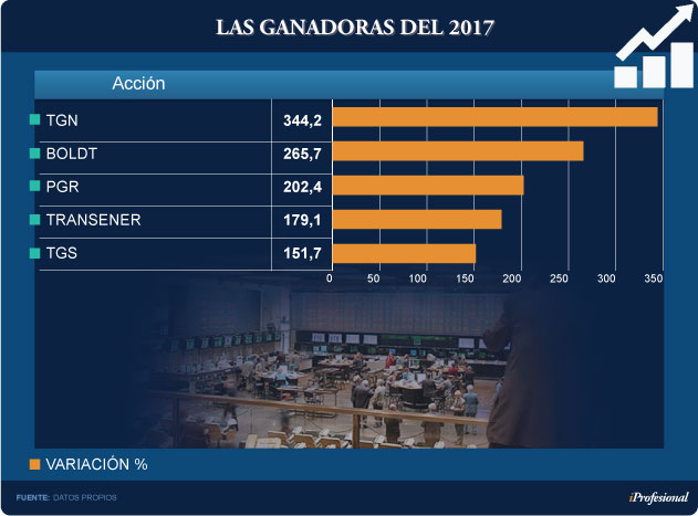 Algunos escalones más abajo se ubican Transener, con una escalada del 179%, y TGS (Transportadora de Gas del Sur), que trepa 152 por ciento.