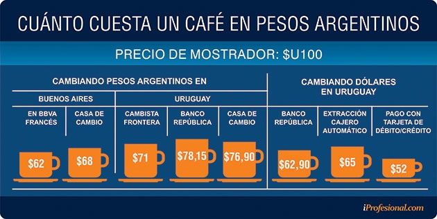 En este caso, tomando las comisiones que cobran los privados en la actualidad, el precio del peso uruguayo ronda los $1,53, una cifra que entraría dentro de la categoría de "conveniente", ya que el café se terminará pagando unos $65.