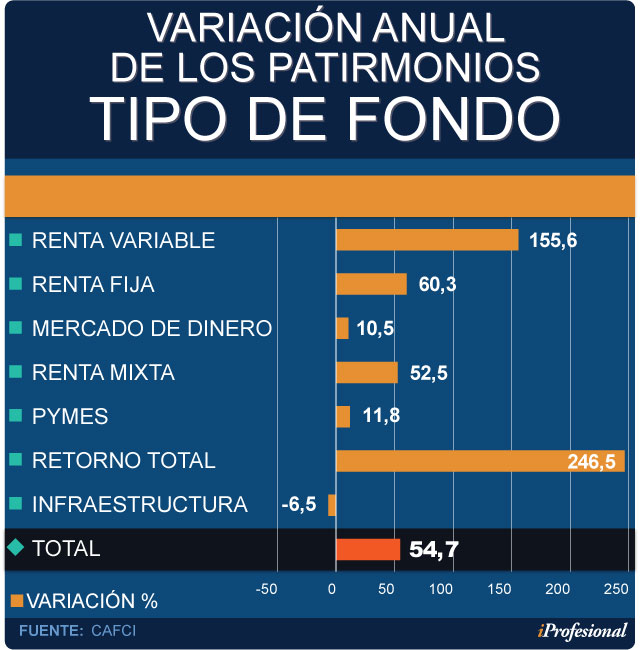 Le siguió la renta fija (que se concentran en tí­tulos públicos y obligaciones negociables corporativas), que subió un nada despreciable 60%.