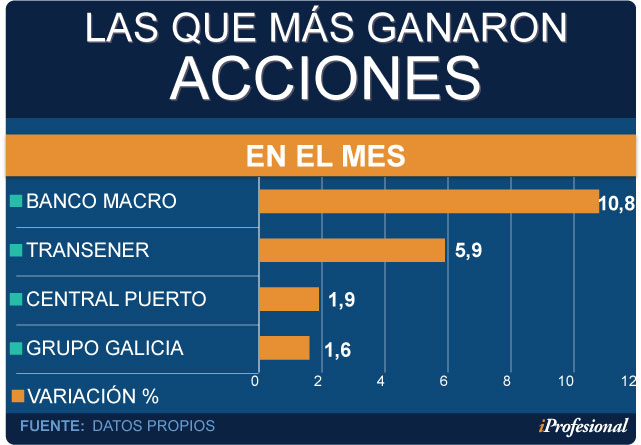 Aun con ese panorama poco alentador, no todo fue negativo en marzo, ya que hubo un reducido grupo de papeles que exhibió resultados positivos, que en su mayoría se trata de acciones representativas de los sectores financiero y energético.