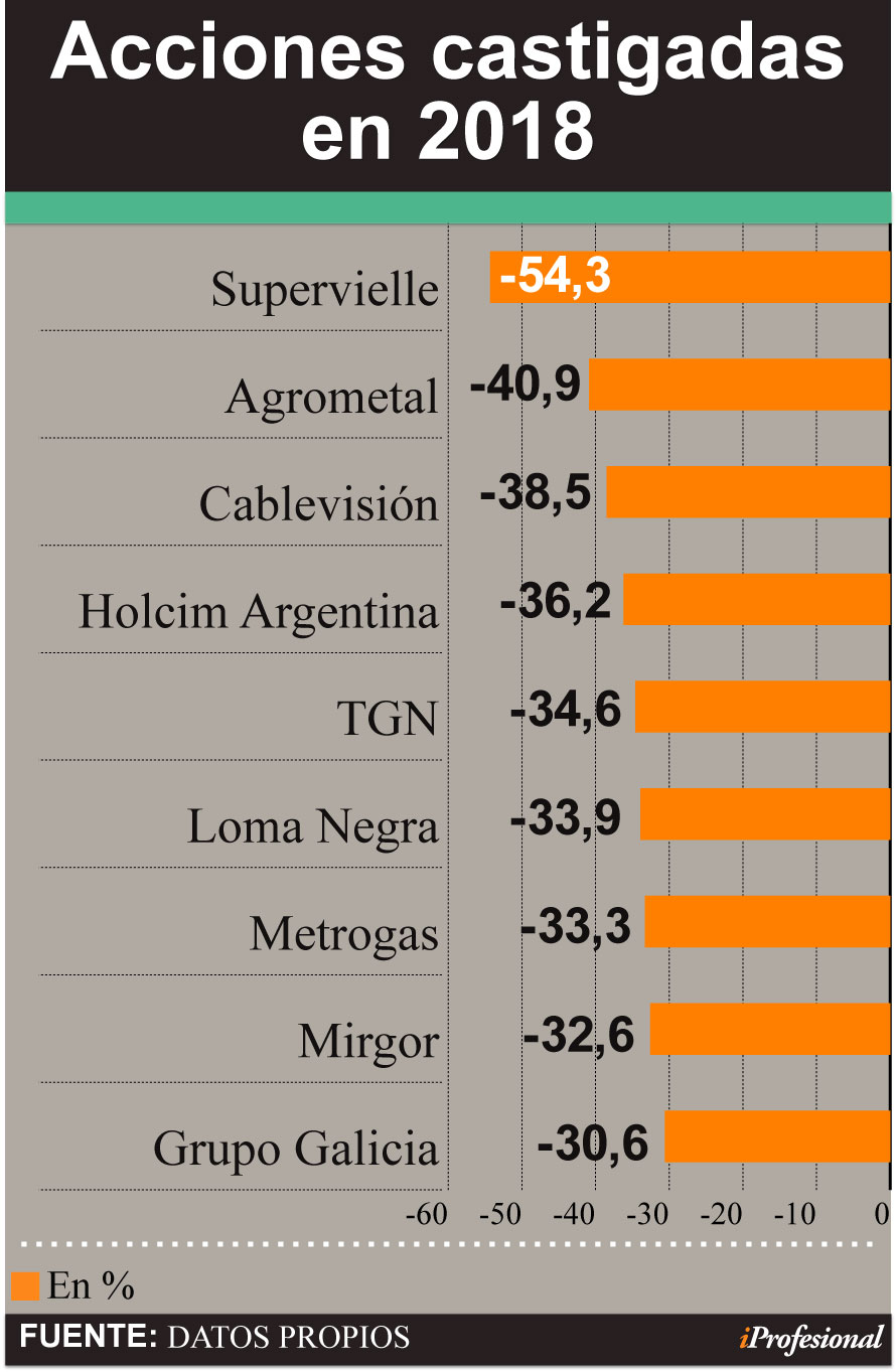 De esta forma, en 2018, un grupo de acciones acumula un negativo de hasta 54%, encabezada por Grupo Supervielle.