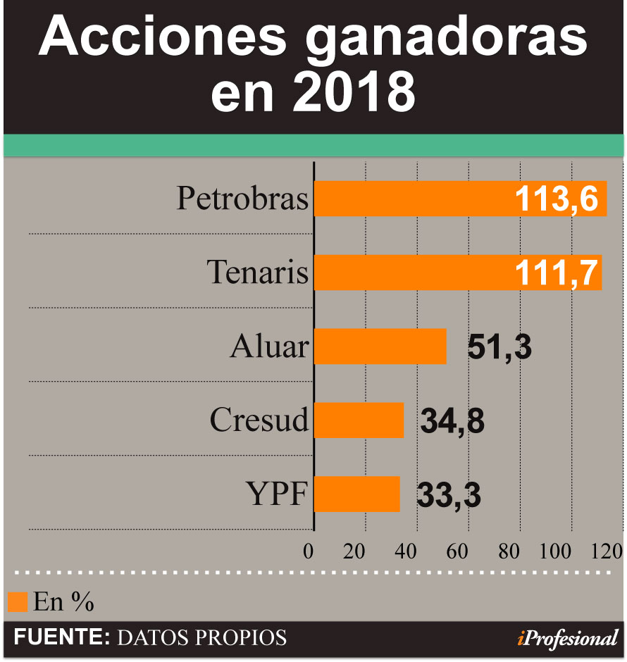 Petrobras encabeza los mejores resultados, con una ganancia de 114% en todo el 2018, seguida por Tenaris (112%) y Aluar, con un incremento del 51 por ciento.