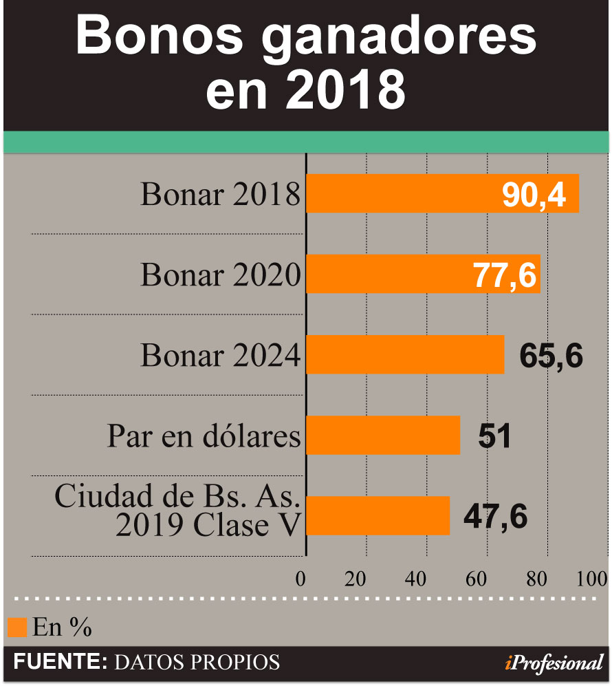 En cuanto a los títulos públicos, en todo el año se destacan las subas de los de corto y mediano plazo, como el Bonar 2018 (90%), Bonar 2020 (78%) y Bonar 2024, que aumentó 66 por ciento.