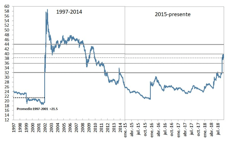 Según se pudo consignar de fuentes estrechamente vinculadas con la negociación Gobierno-FMI, se habla de una banda cambiaria bastante amplia: un techo que va de los 40 a los 44 pesos y un piso de entre 32 y 36 pesos. Si el dólar supera el techo, el Central vendería divisas, si perfora el piso, saldría a comprar.