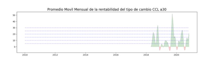 Ante las medidas desesperadas de las últimas dos semanas por parte del BCRA, con la emisión de los bonos dólar linked, y con la flexibilización de los días de parking por parte de la CNV, podemos ver que, a lo largo de los próximos 30 días, el panorama para que el CCL pueda volver a conseguir su valor máximo de 2020, es bastante considerable. Esto nos muestra que el tipo de cambio estará buscando los niveles de la semana del 20 de octubre de 2020.