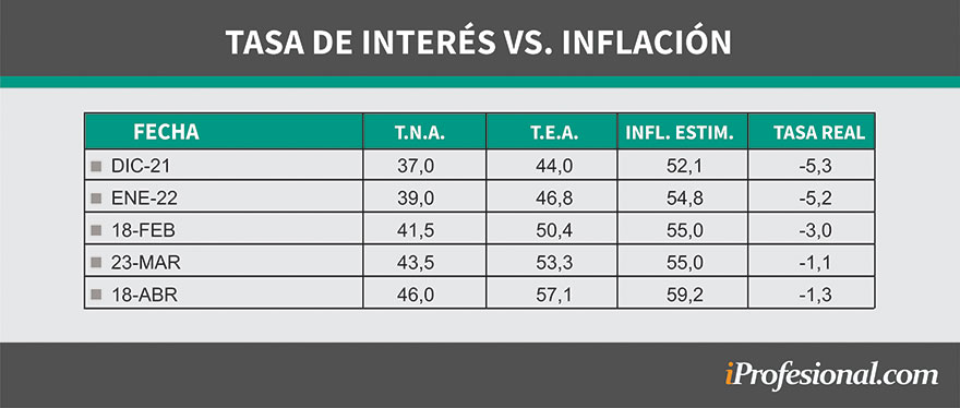 Con estos últimos aumentos en los rendimientos, se produjo un claro acercamiento en términos reales, pues se pasó de aquel 5% en primera instancia al 3% y desde fines de marzo sería apenas un punto por debajo de la inflación.