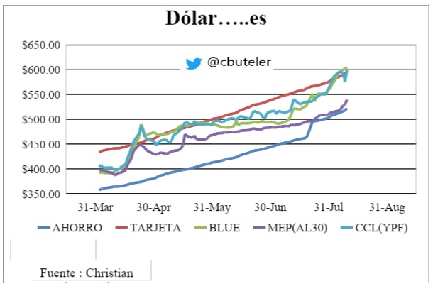 Los dólares financieros deberán acomodarse a la nueva realidad, mantener la misma brecha de la semana pasada sería hablar de un dólar de $700, veremos si en las próximas ruedas lo alcanza o quedamos con una brecha menor.
