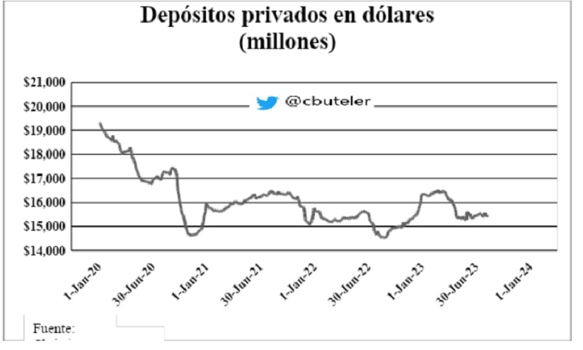 Los depósitos privados en dólares al 9 de agosto se ubicaron en u$s15.386 millones mostrando una estabilidad que ya lleva 3 meses. Es importante para lograr sostener la misma no solo el resultado de la elección sino también recuperar la tranquilidad en los dólares dado que cada vez que se altera los dólares libres termina provocando una salida de depósitos. El gobierno y los bancos tomaron la precaución de abastecer a las sucursales con efectivo suficiente para que quien desee retirar su dinero no tenga problema y de esa forma dar una señal de solvencia. Esperemos que no sean necesarios utilizar dichos fondos.