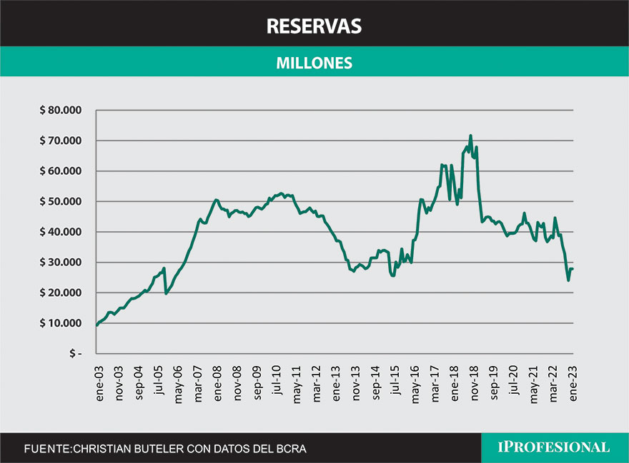 El viernes las reservas cerraron en u$s 27.820 millones. En agosto, y gracias al desembolso del FMI, lograron cortar una caída de 4 meses consecutivos donde habían llegado a perder más de u$s 15.500 millones en ese lapso de tiempo. La situación sigue siendo crítica pensando en los pagos que deben hacerse a los organismos internacionales y a las exportaciones que aún están lejos de volver a los niveles normales.