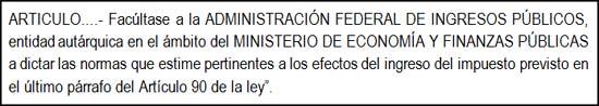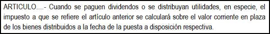 El inciso j) del artículo 1 de la propuesta de reglamentación, incluye una serie de artículos sin número. El segundo que se encuentra bajo el título "Dividendos o utilidades. Retención" destaca: