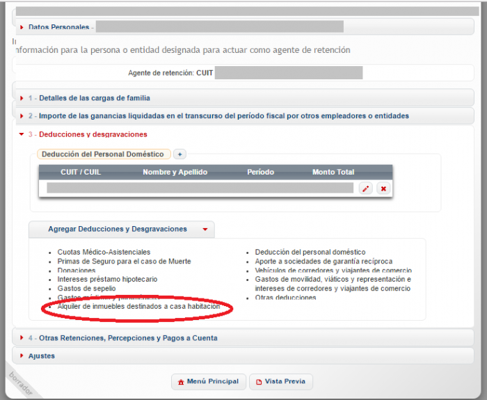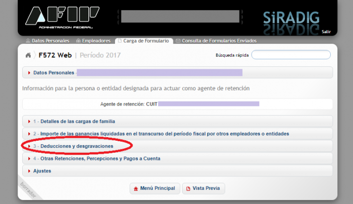Luego se hacé clic en “Cargar Formulario” y en “Deducciones y desgravaciones”.