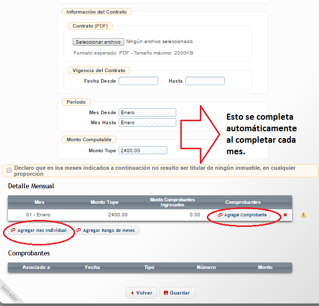 Mensualmente se tiene que cargar el monto pagado en dicho períodod. En el apartado “Detalle mensual”, se debe hacer clic en “Agregá mes individual”.