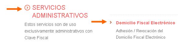 1- Dentro de “Servicios Administrativos” ingresar al servicio “Domicilio Fiscal Electrónico”.