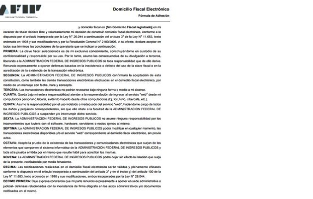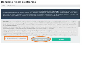 A los efectos de la constitución del domicilio fiscal electrónico, los contribuyentes deberán manifestar su voluntad expresa mediante la aceptación y transmisión vía internet de la fórmula de adhesión.
