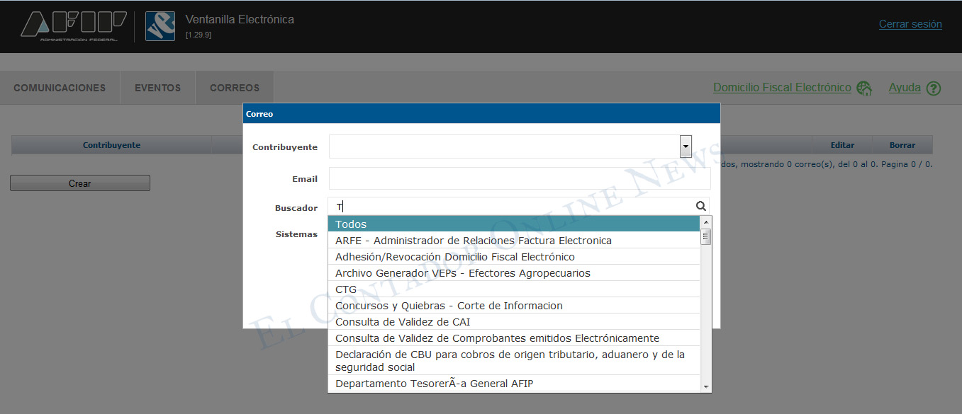Para recibir avisos acerca de las novedades producidas en el domicilio fiscal electrónico, se podrán registrar distintas direcciones de correo electrónico.