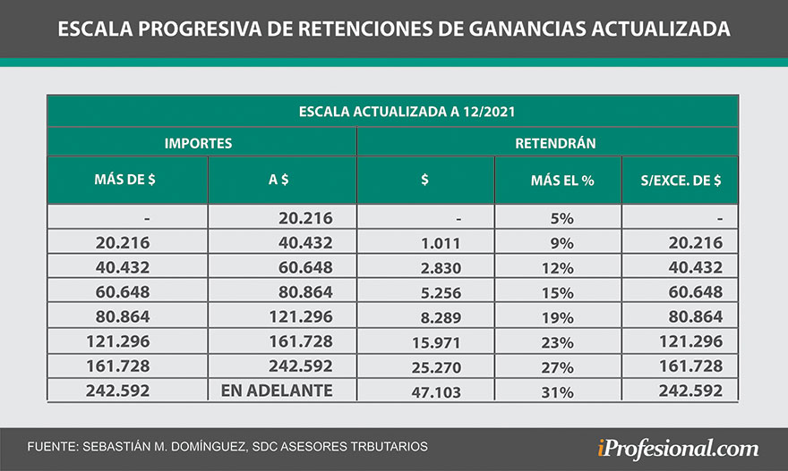 En el caso de profesionales, el efecto de falta de actualización es doble ya que no se ha actualizado el monto no sujeto a retención como tampoco la escala progresiva que se aplica para determinar la retención, indicó Domínguez.