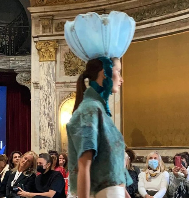Fue en el año 2018 cuando decidió adentrarse en el arte de la sombrerería, y sorprendentemente, apenas cuatro clases después, ya se encontraba participando en el prestigioso HAT SHOW, un desfile de sombreros enfocado en el diseño sostenible y el consumo responsable.