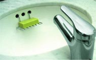 Se trata de una jabonera que va insertada dentro del lavabo para evitar que el jabón se pongo pegajoso o bien que el simple hecho de lavarse las manos se transforme en un enchastre.
