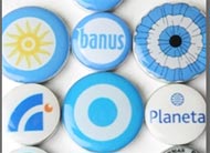 De un lado se puede distinguir la escarapela argentina y del dorso la bandera. O sea, son reversibles y obviamente pueden servir para logos de las empresas.