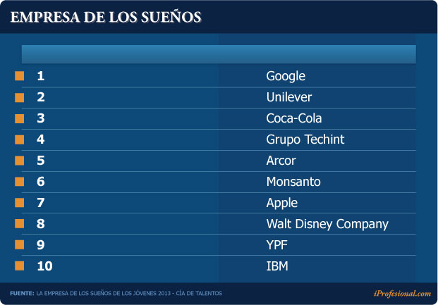Ante la pregunta "¿Tienes alguna empresa en la que sueñas con trabajar?", apenas el 52% de los universitarios y recién graduados argentinos respondió que "si". Se trata del porcentaje más bajo de toda la región después de Chile (44 por ciento.)