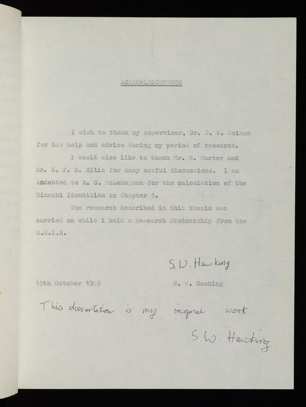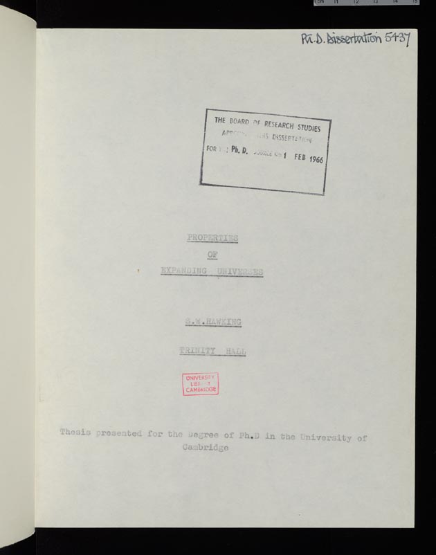 Hawking escribió este trabajo en 1965, cuando tenía 24 años. "Al hacer mi tesis doctoral accesible, espero inspirar a la gente de todo el mundo a mirar las estrellas y no a sus pies; preguntarse sobre nuestro lugar en el universo y tratar de darle sentido al cosmos", dijo el propio científico a través de un comunicado emitido por la casa de altos estudios.