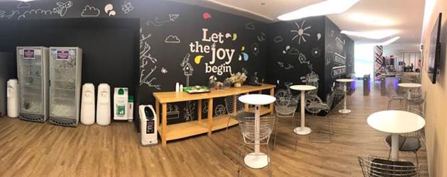 Y se destaca por la diferencia una sala llamada "Fly Garage", diseñada con pufs, sillones de cuero, alfombras, una cartelera que cubre todo el ancho de la pared y murales coloridos inspirados en las marcas icónicas de Mondelez. Según describen en la empresa, se trata de la incubadora in company que desde 2012 es la cuna de algunas de las ideas y campañas más creativas de la empresa.