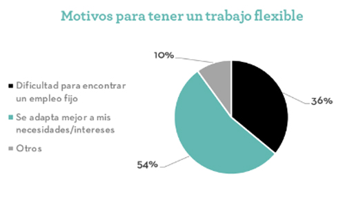 El 13% prefiere tener un trabajo flexible por ser un modo de mantener flexibilidad en la vida. El 5%, por su parte, lo ve como una oportunidad de realizar un trabajo basado en proyectos. Y el 7% restante son estudiantes en busca de un trabajo temporal para complementar sus ingresos.