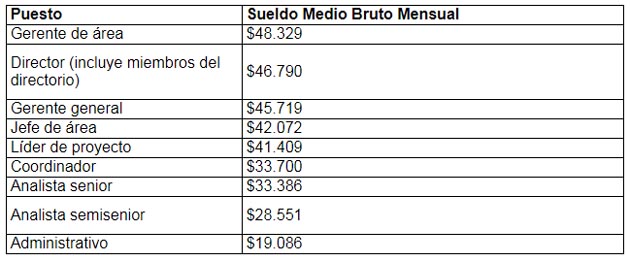 "En este informe, la plataforma se ocupó de buscar las remuneraciones de la primera escala salarial, es decir, los puestos que ocupan los mandos medios y altos en el organigrama en una empresa", comunicaron desde la compañía.