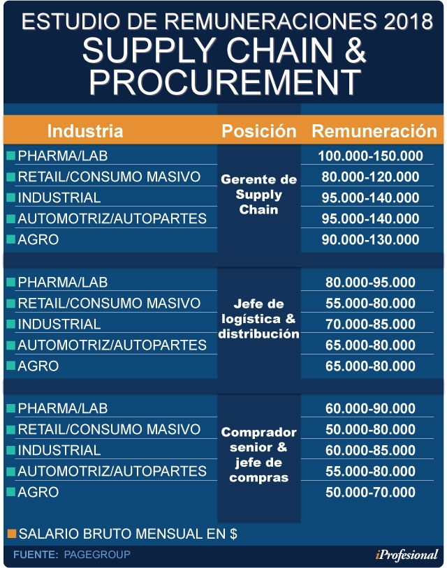 En relación a sus pares de otras profesiones, los encargados de Logística y Supply Chain parecen tener menor salario en las empresas argentinas. "En promedio son los que tienen los sueldos más retrasados", dijo Rocha.