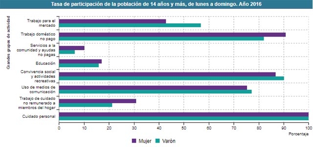 Pero otra parte de esa inequidad responde también a que sigue recayendo sobre la mujer una porción mayor del tiempo dedicado a trabajo doméstico no remunerado y al cuidado de familiares.