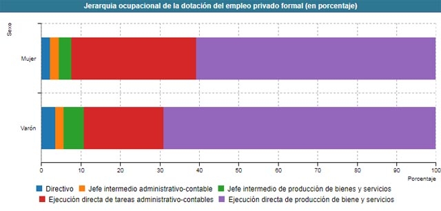 Respecto del empleo formal, los últimos datos de los que dispone la Ciudad muestran que entre los profesionales, la proporción de ocupados es similar (20,4% y 22,3% respectivamente entre mujeres y hombres) pero que las trabajadoras calificadas acceden a menos puestos directivos.
