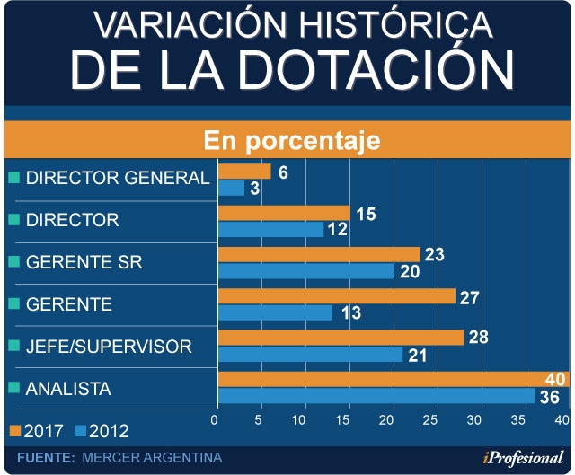 La encuesta de remuneraciones de Mercer en 2017 mostró que "la diferencia salarial en favor de los hombres se observa en todos los niveles de la organización". La consultora asegura que a nivel local las directoras cobran un 9% menos que sus pares masculinos, las gerentas un 6% menos, y las supervisoras un 4% abajo.