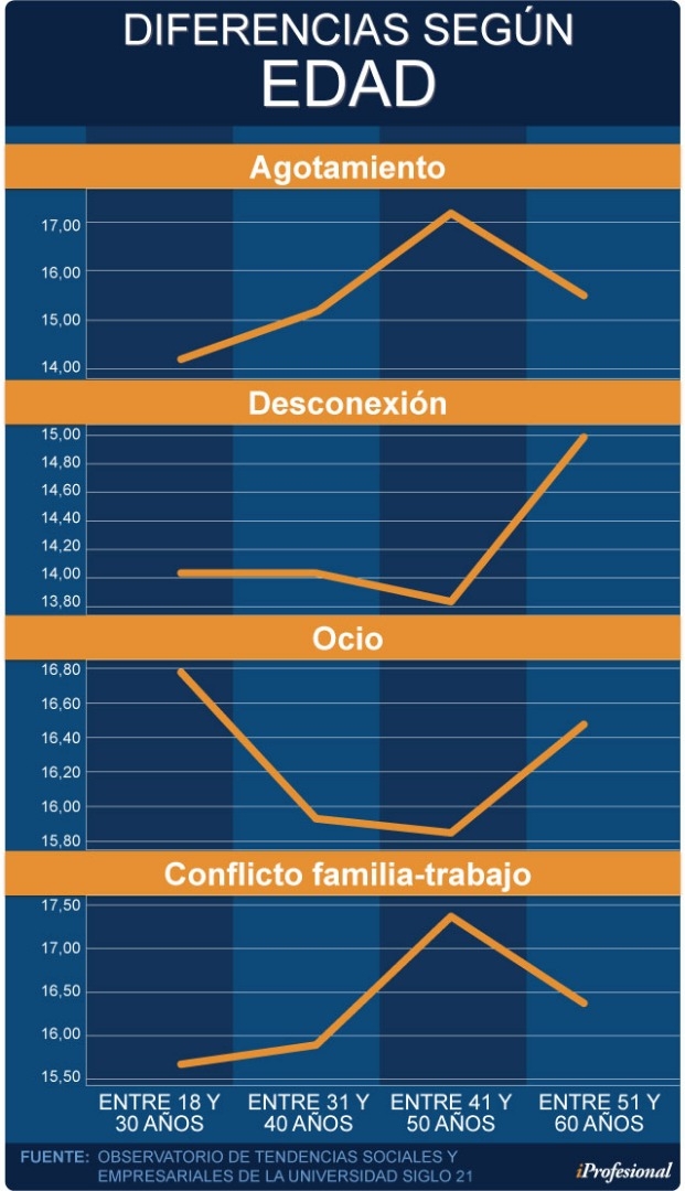 Carlos Spontón, Coordinador de Observatorio de Tendencias Sociales y Empresariales de la Universidad, observó que "la franja entre los 41 y los 50 constituye un período crítico para muchas mujeres, dado que en esa etapa habitualmente se define si lograrán un ascenso a nivel profesional o si se mantendrán en el cargo que desarrollaron hasta ese momento".
