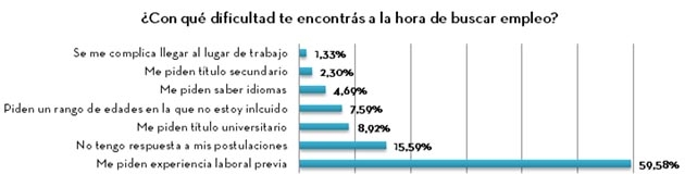A su vez, en otra consigna, un 16,17% respondió no conseguir trabajo "porque no hay mucha demanda de mi perfil en el mercado laboral".