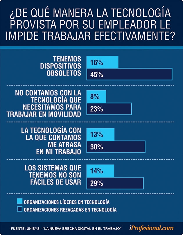 Para Unisys existe una nueva "brecha digital en el trabajo", de acuerdo con la forma de adopción de la tecnología. La misma genera que las personas se encuentren comprometidas y motivadas, o por el contrario, frustradas laboralmente.