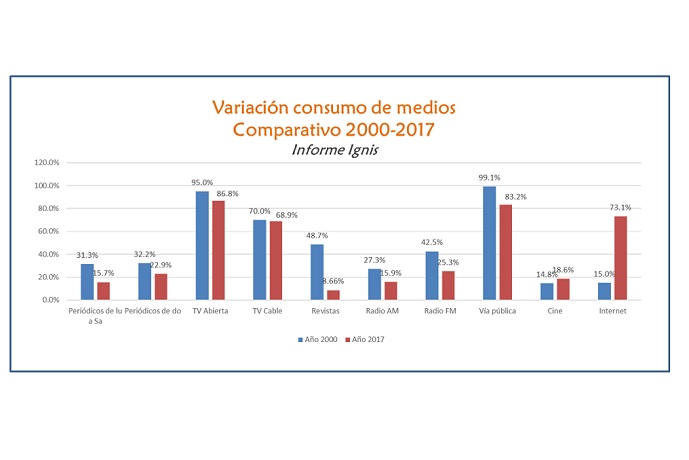 "Hace 20 años atrás los principales anunciantes de la televisión abierta eran las empresas de consumo masivo - Unilever, Procter & Gamble, Johnson & Johnson, Johnson & Son, Molinos o Danone -, las cuales invertían cerca del 70% de su presupuesto en tv. Hoy esos porcentajes variaron ya que cambió el consumo de medios que se convirtió en multiplataforma. Sin embargo, a la hora de lograr masividad y efectividad absoluta se sigue eligiendo la televisión" destaca Lorenzo, de Ignis.