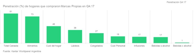 Así, ocho de cada 10 hogares argentinos compraron al menos un producto de este tipo de marcas durante el último trimestre de 2017.