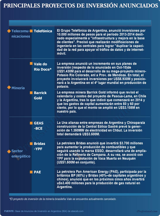 "Durante 2012, la base de nuevos anuncios de inversión fue de un total cercano a los u$s2.500 millones. Y, si se excluyen los anuncios de Vale, alcanza la caída ha sido de más del 60%, respecto al año anterior", completó.