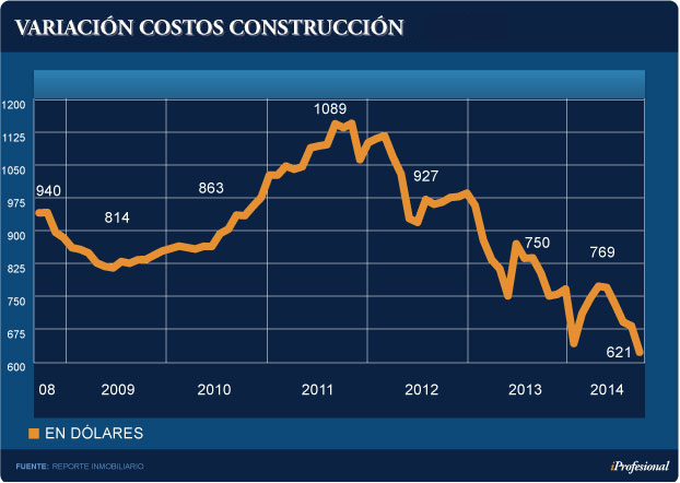 Es que los costos para construir, medidos en esa moneda, han caído a sus niveles más bajos de los últimos seis años.
